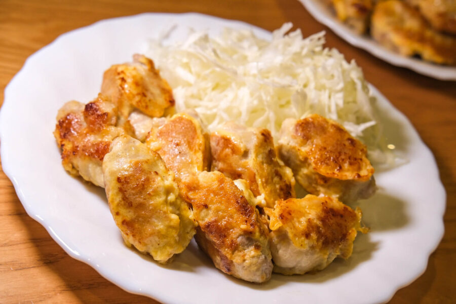- 粗熱が取れたピカタを器に盛り付けてできあがり。